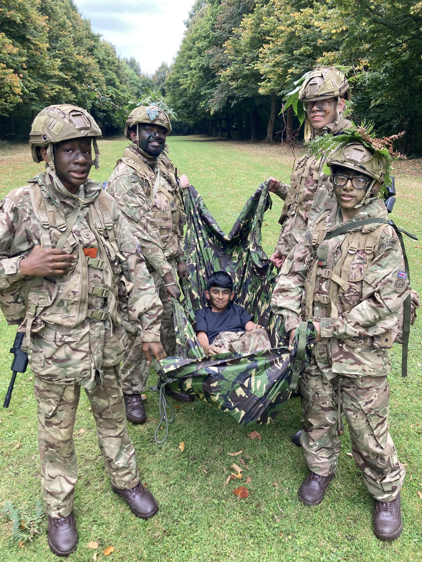 The focus is on developing confidence, team working and leadership skills. Activities include map reading, fieldcraft, navigation, fitness, first aid, camping and military knowledge.